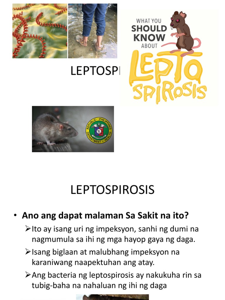 Balita Pilipinas Ngayon rounds up the top stories from around the PhilippinesGMAs regional stations in Luzon Visayas and MIndanao. Leptospirosis ay isang uri ng sakit ng dulot ng isang microbacteria na tinatawag na Leptospira na maaring matagpuan sa mga tubig baha putik taniman o kahit sa swimming pool. 12Paano magkakasakit ng Leptospirosis ang tao.